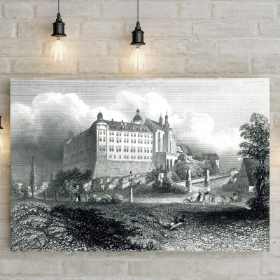 Erleben Sie das imposante Altenburger Schloss mit diesem hochwertigen Kunstdruck „Altenburg Schloss“. Der Stahlstich zeigt das Schloss im Zentrum der historischen Stadtansicht, umgeben von Feldern und Wiesen. Detailreich gestaltete Spaziergänger und ein spielender Hund machen die Szene lebendig. Perfekt für Liebhaber historischer Architektur, Schlösser und filigraner Kunstwerke.
