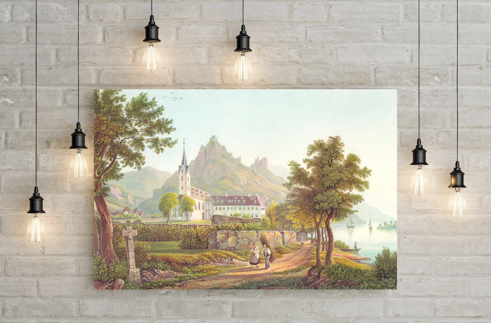 Die kunstvolle Komposition, die ruhigen Figuren und die idyllische Topografie verleihen dem Bild eine friedliche Atmosphäre – ein bewusster Kontrast zum dramatischen Sagenmotiv der „feindlichen Brüder“, das mit der Region verbunden ist.