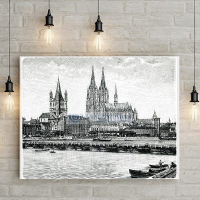 Wird Köln von einem Künstler dargestellt, dann oftmals so wie folgendes Bild. Zu sehen ist vom Rheinufer aus der Fluss mit zahlreichen Booten. Über den Rhein führt eine Brücke zu anderen Seite von Köln. Hier sieht man klar im Fokus den Dom. Davor befinden sich zudem zahlreiche andere Gebäude. Eines davon sticht besonders hervor, da er einen durchaus sehr imposanten Turm vorweist. Dies ist das ehemalige Rathaus von Köln. Hauptaugenmerk ist aber dennoch der Dom, der durchaus sehr detailverliebt dargestellt wird. Dieses Kunstwerk von Köln ist wirklich sehr gelungen.