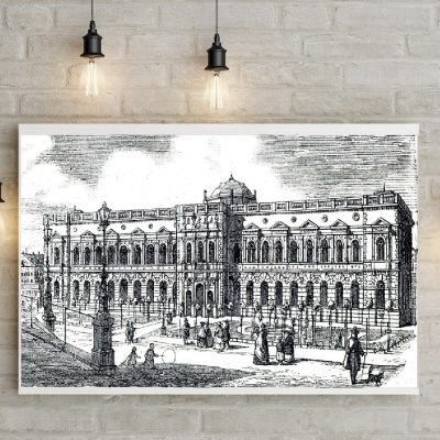 Bringen Sie Kunstgeschichte in Ihre Räume mit diesem stilvollen Kunstdruck „Museum mit Gemäldegalerie Dresden“. Das Motiv zeigt das eindrucksvolle Museums‐ und Galeriebauwerk im Herzen Dresdens in einer historischen Darstellung um das Jahr 1900 – ideal für Liebhaber von Architektur, Kunst und dekorativer Wandgestaltung.