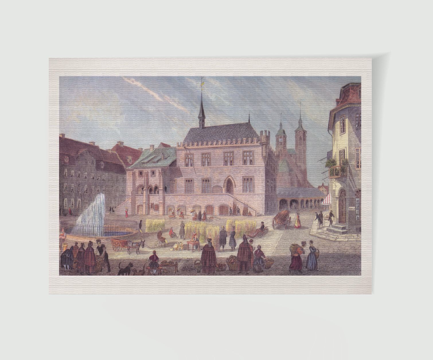Diese historische Stadtansicht von Göttingen ist weit mehr als ein dekoratives Wandbild. Sie ist ein lebendiges Zeitdokument, das das städtische Leben, die Architektur und die Atmosphäre Göttingens um 1850 eindrucksvoll festhält. Ideal für Liebhaber historischer Stadtansichten, Sammler klassischer Druckgrafik und alle, die Göttingen mit Geschichte und Stil in ihren Räumen präsentieren möchten.
