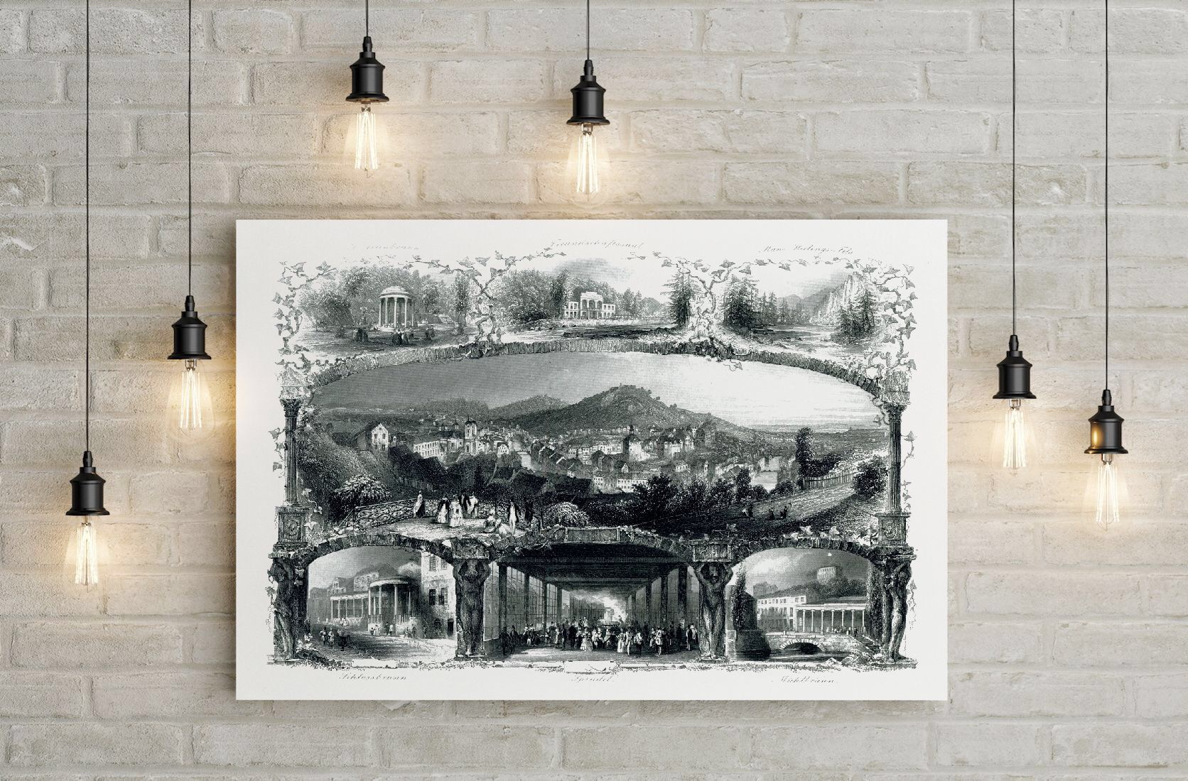 Karlsbad Stadtansicht Souvenierblatt (Leinwandbild, Kunstdruck)