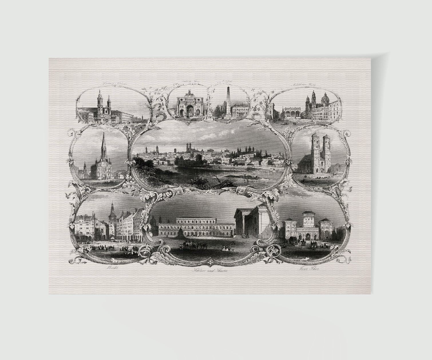 Münchner Stadtansicht Souvenirblatt II ca. 30 x 42 cm (Stahlstich, Kunstdruck)