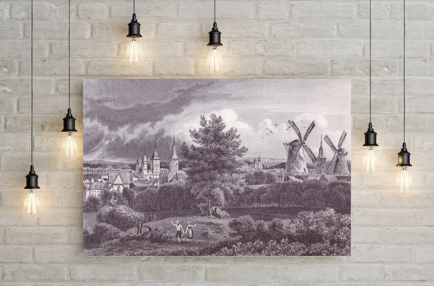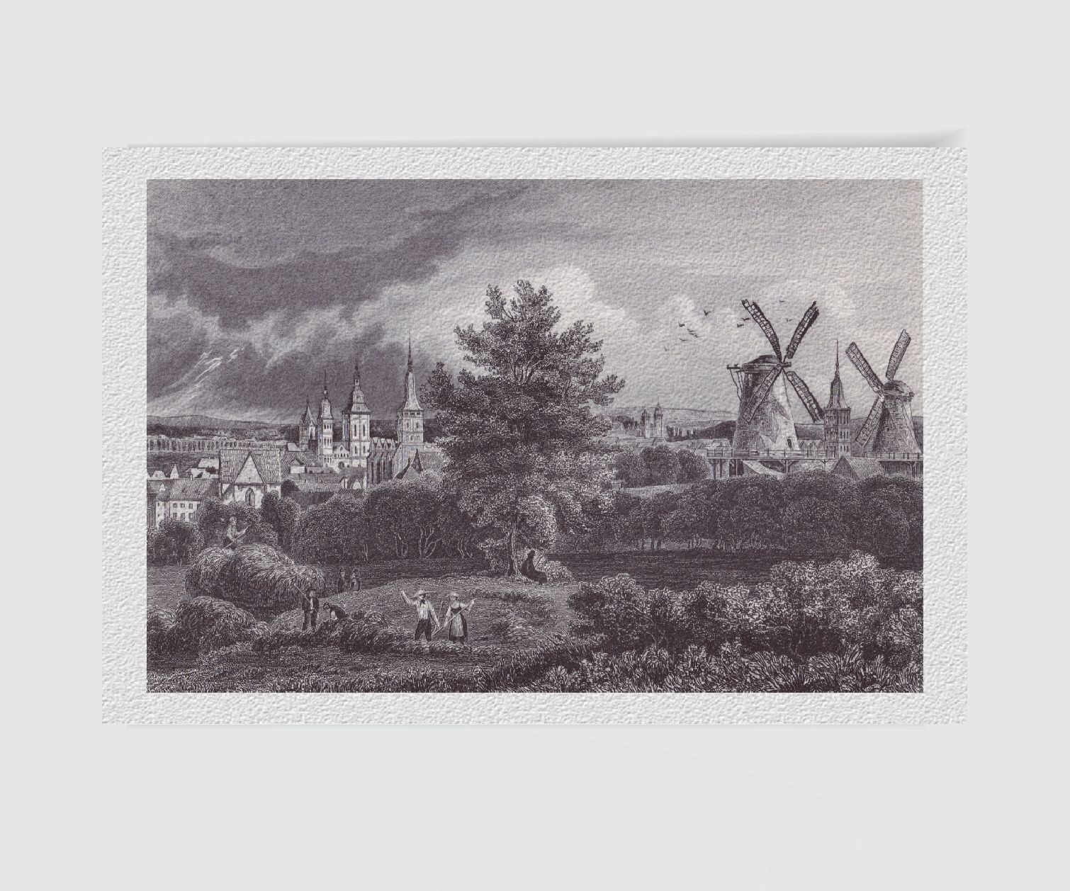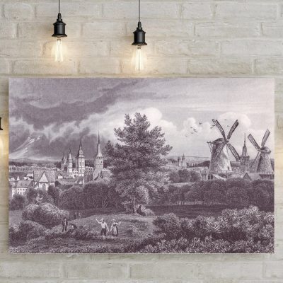 Diese historische Stadtansicht von Osnabrück ist weit mehr als ein dekoratives Wandbild. Sie ist ein starkes Zeitdokument, das Landschaft, Arbeit, Stadtentwicklung und Wetterstimmung zu einer eindrucksvollen Gesamtkomposition verbindet. Ideal für Liebhaber historischer Stadtansichten, Sammler klassischer Druckgrafik und alle, die Osnabrück mit Tiefe, Geschichte und Atmosphäre präsentieren möchten.