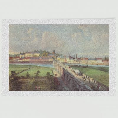 Der auf Historienbilder.de angebotene restaurierte Neudruck bewahrt die freundliche Farbgebung sowie die ausgewogene Licht- und Schattenwirkung des Originals und lässt diese Stadtansicht erneut erstrahlen.